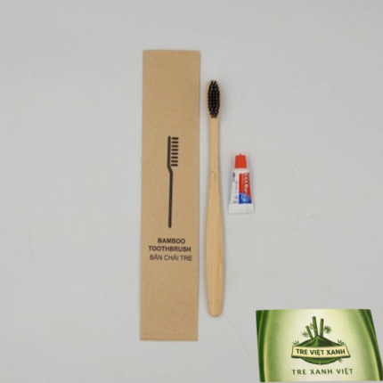 1 bàn chải đánh răng cán tre kèm kem đánh răng